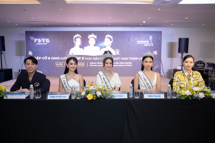 Trong buổi gặp gỡ này còn có á hậu 1 Trần Tuyết Mai (Hải Phòng), á hậu 2 Trần Thu Hà (Nam Định), nhà sản xuất Kim Thanh Thảo, Hoa khôi Lại Hương Thảo và ông Phạm Duy Khánh - Trưởng ban tổ chức.