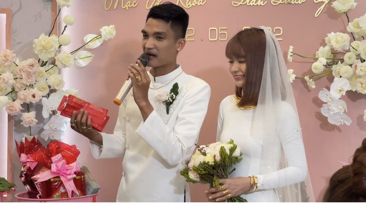 Mạc Văn Khoa cùng hội bạn thân cưỡi dream lầy lội đi cưới vợTrong suốt buổi lễ, Mạc Văn Khoa khiến mọi người cười ngất khi ‘phát biểu câu nào là hài câu đó’. Nam danh hài luôn miệng phân bua: “Lần đầu cưới vợ, không rõ, mong mọi người hướng dẫn’’, và hài hước cảm ơn các khách mời đã “góp vốn’’ cho hai vợ chồng làm ăn.