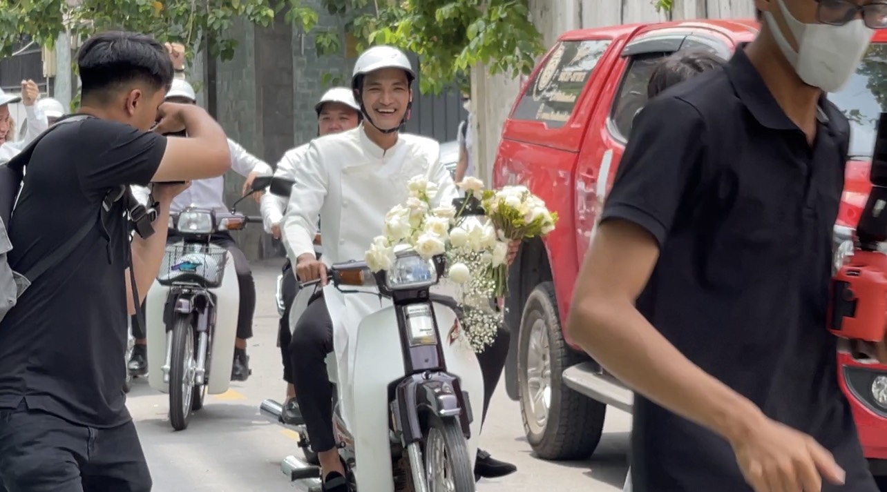 Vừa đến rước dâu, Mạc Văn Khoa đã hài hước: “Nhớ vợ, nhớ con quá! Một đêm rồi không gặp!’’. Nói về chiếc xe dream đón dâu, Mạc Văn Khoa cho biết, xe kỷ niệm do ba mẹ mua lâu rồi, được chuyển từ Hải Dương vào để đi hỏi vợ.