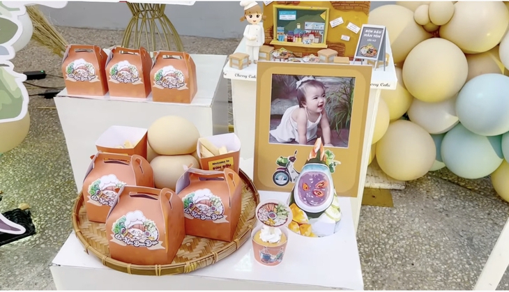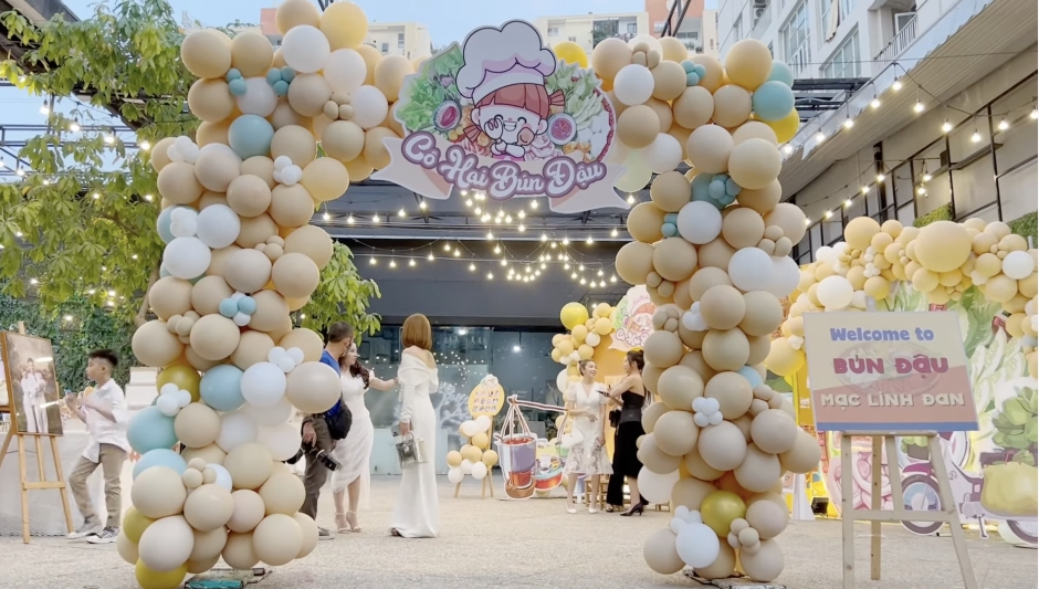 Không gian tiệc thôi nôi đậm hương vị "bún đậu mắm tôm" của con gái Mạc Văn Khoa.Mạc Văn Khoa và vợ cũng đặt tên cho không gian buổi tiệc hoành tráng bằng biệt danh đáng yêu "Cô Hai Bún Đậu" cùng phong cách trang trí đậm chất ẩm thực với màu chủ đạo của các nguyên liệu làm nên món Bún đậu mắm tôm nổi tiếng mà nam diễn viên hài đang kinh doanh phát đạt.