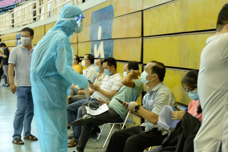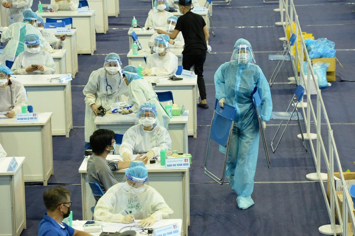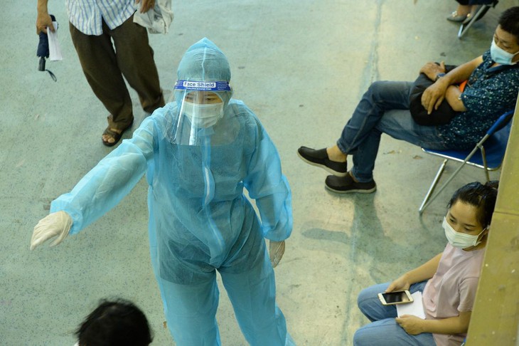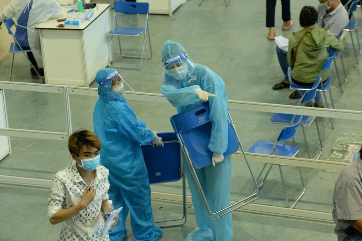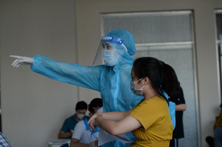 Dù nàng Hậu đeo khẩu trang, kính và quần áo bảo hộ kín mít nhưng rất nhiều người đến tiêm chủng đã nhận ra cô bởi chiều cao nổi bật cùng giọng nói ngọt ngào quen thuộc. Khi "bị phát hiện" và được chào, cô nàng cũng nhiệt tình chào hỏi vui vẻ rồi nhanh chóng trở lại với công việc.