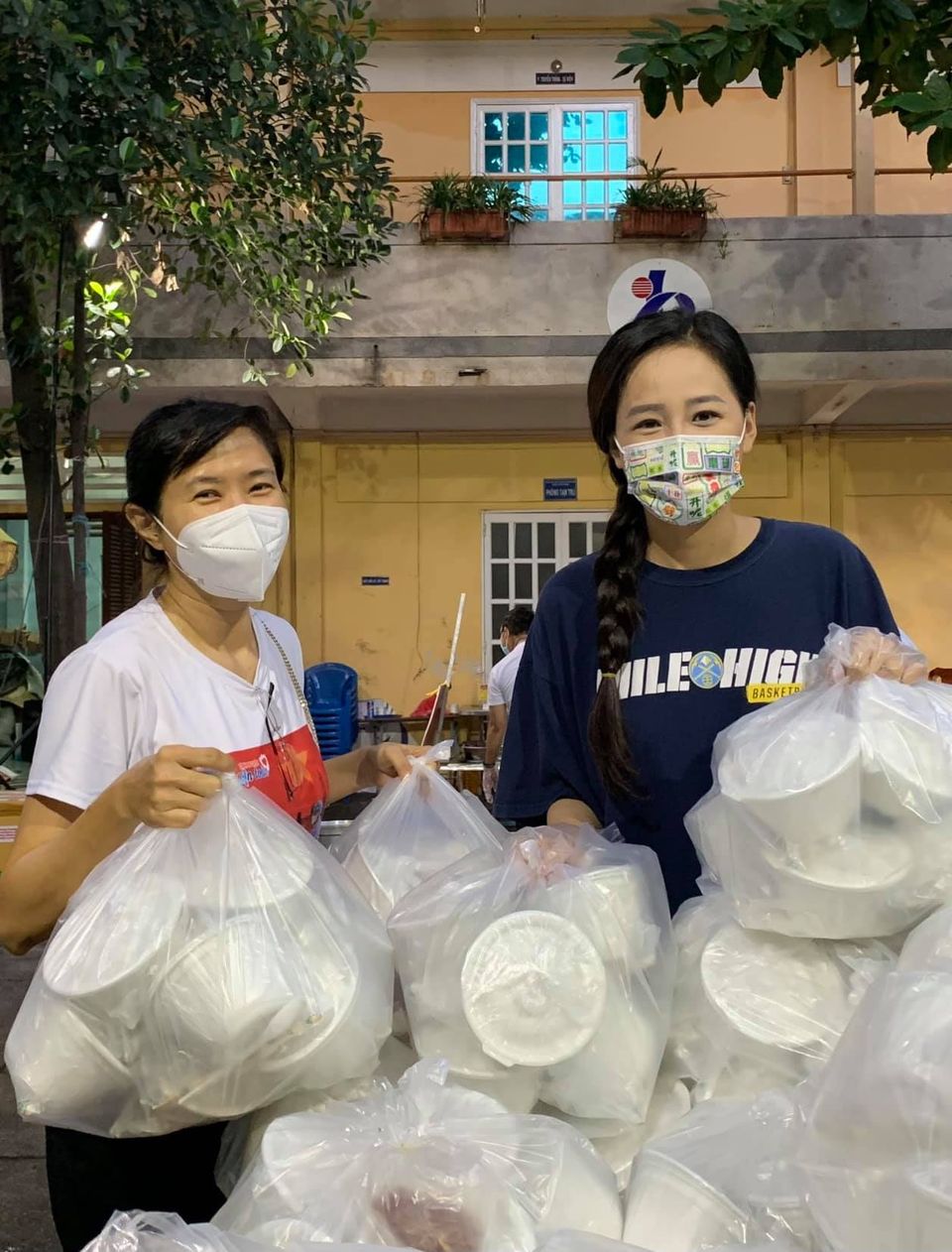 Hoa hậu Mai Phương Thúy chuẩn bị thực phẩm cho đội ngũ tại Bệnh viện Nhiệt đới (Ảnh: FBNV)Hai ngày qua, Mai Phương Thúy tình nguyện làm phụ trách hướng dẫn khu vực người bị cao huyết áp ngồi nghỉ để ổn định khi vào chích vaccine. Cô hướng dẫn người đi chích vaccine đến từng khu vực ghế cũng như thông tin về việc tiêm phòng.