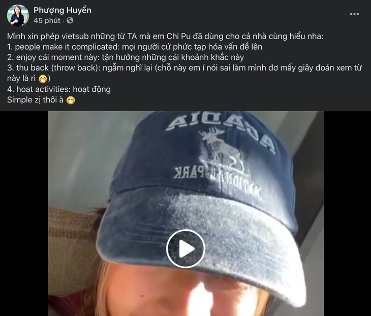 Gần đây nhất, nữ ca sĩ đã có một buổi livestream dài 25 phút, thể hiện trình độ ngoại ngữ siêu đẳng của mình khi liên tục "chêm" tiếng Anh vào giữa những từ tiếng Việt. Cô ấy không phải ai khác, chính là Chi Pu, người vừa đặt chân đến xứ cờ hoa... non nửa tháng.