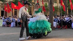 Nam sinh Trường THCS Đặng Thúc Vịnh (Hóc Môn, TP.HCM) có màn catwalk biểu diễn trang phục tái chế thần thái chẳng khác gì người mẫu chuyên nghiệp.