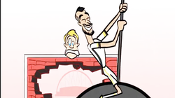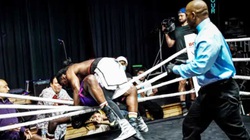 Người đàn ông phải nhảy dây bằng mông khi ‘gánh’ trên bụng một người phụ nữ đang cõng đứa trẻ trên vai.