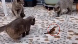 Thấy con chim cu gáy dưới sân, chú mèo nằm rình trên xe máy rồi lao ra bắt gọn trong một nốt nhạc.