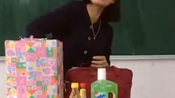 Nam sinh lên tặng quà và liên tục dùng những câu chúc vừa có cánh vừa hài hước gửi đến cô giáo nhân ngày 20-11 khiến cả lớp phì cười.
