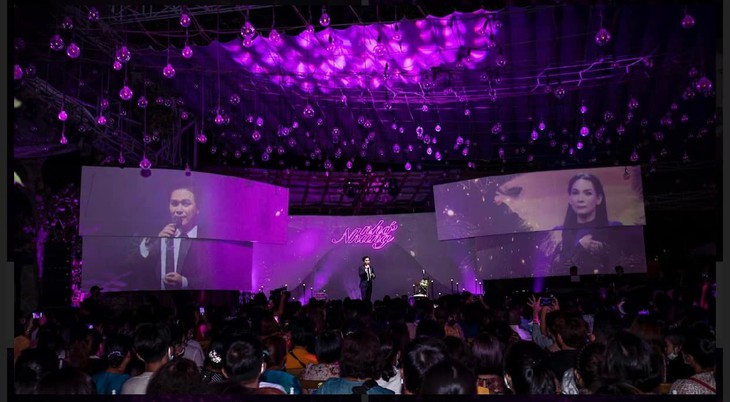 Mạnh Quỳnh hát tưởng nhớ người bạn tri kỷ - Ảnh: BTC Đêm nhạc Nhớ Nhung diễn ra trễ hơn dự định gần 1,5 tiếng do sự cố mất điện nhưng đông đảo khán giả vẫn nán lại và thưởng thức trọn vẹn chương trình đến hơn 0h sáng hôm sau.