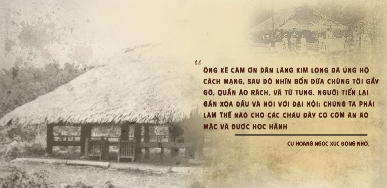 Sau khi Đại hội thành công, dân làng cử đoàn đi chúc mừng có phụ lão, thanh niên, phụ nữ, thiếu niên mang theo gạo, gà và một con bò để chúc mừng. Cậu bé Hoàng Ngọc là một trong bốn thiếu niên được giao nhiệm vụ vừa chăn trâu vừa canh người lạ vào làng ... Mãi sau đó một năm, trong dịp rước ảnh Chủ tịch về làng, người Kim Long mới ngã ngửa vì hóa ra Chủ tịch Hồ Chí Minh chính là ông Ké làng mình.