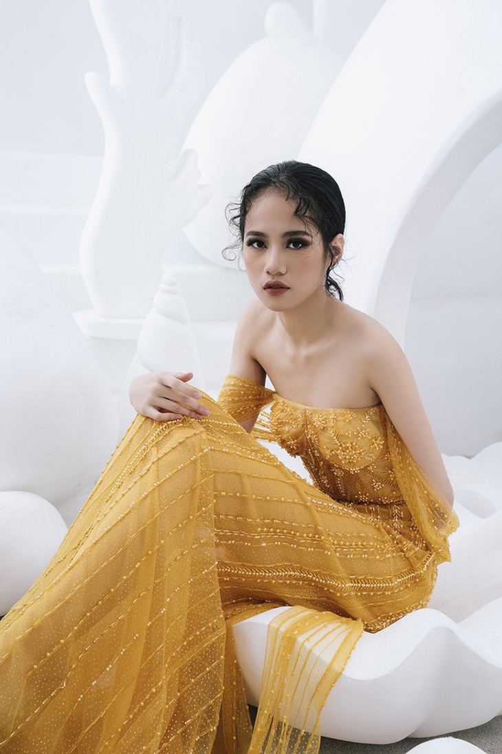 Trong mẫu thiết kế đầm dạ hội mang sắc đen huyền bí, Hà Phương bước ra như một thiên thần bóng đêm