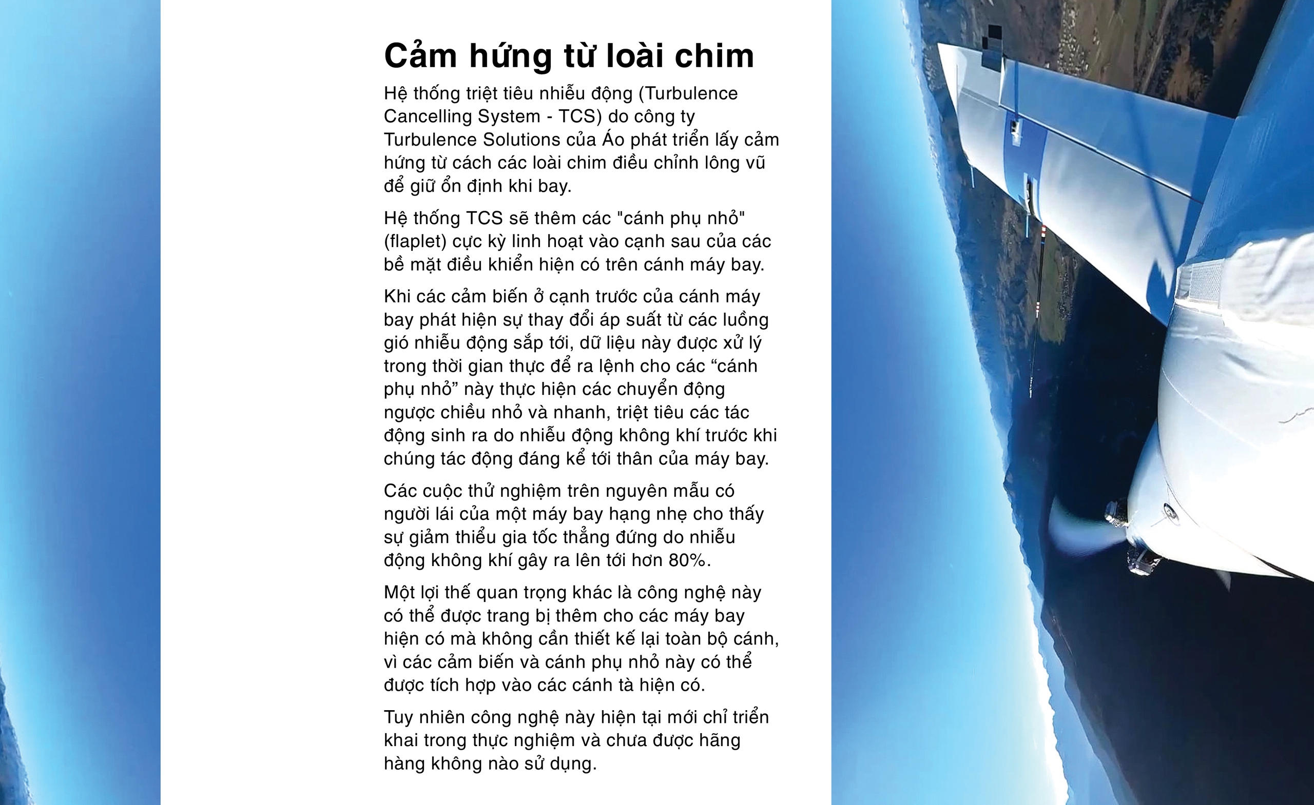 Theo quan điểm của người viết, các công nghệ dù thực sự đỉnh cao và xuất sắc như LIDAR, AI, nền tảng của IATA, hay giải pháp cánh phụ nhỏ (xem box) cuối cùng có lẽ vẫn chỉ là những phương pháp dự báo và điều trị một triệu chứng - nhiễu động không khí - chứ không phải là một phương thuốc chữa trị nguyên nhân gốc rễ, ở đây là nhiễu động nội tâm của con người.