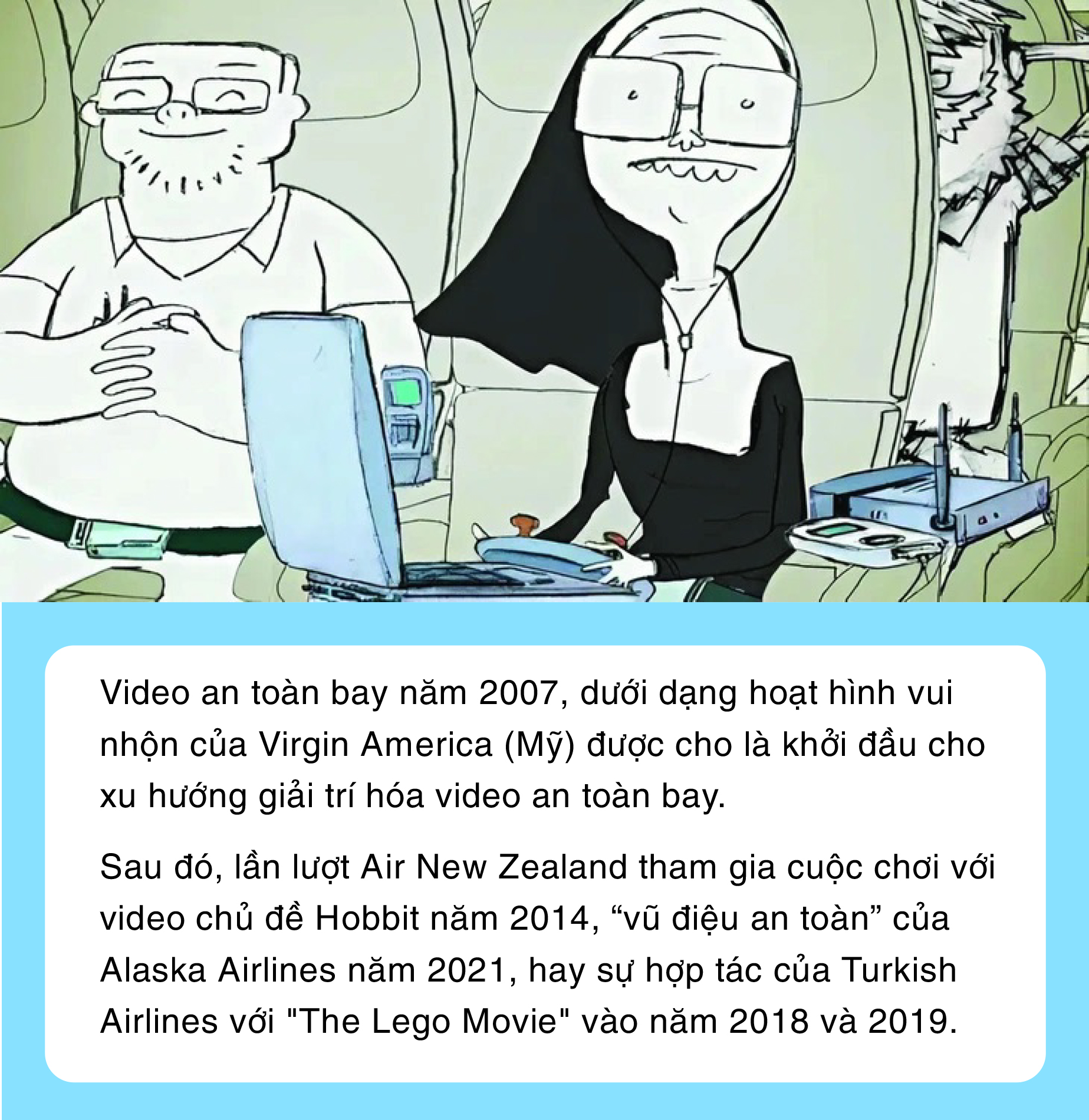 Trước thực tế phũ phàng rằng không mấy hành khách để ý tới video hướng dẫn an toàn bay - vì chúng chán ngắt hoặc họ đã bay nhiều tới mức nghĩ mình thuộc nằm lòng những nội dung đó - các hãng hàng không đã đổ tiền để chúng hấp dẫn, thu hút sự chú ý hơn.