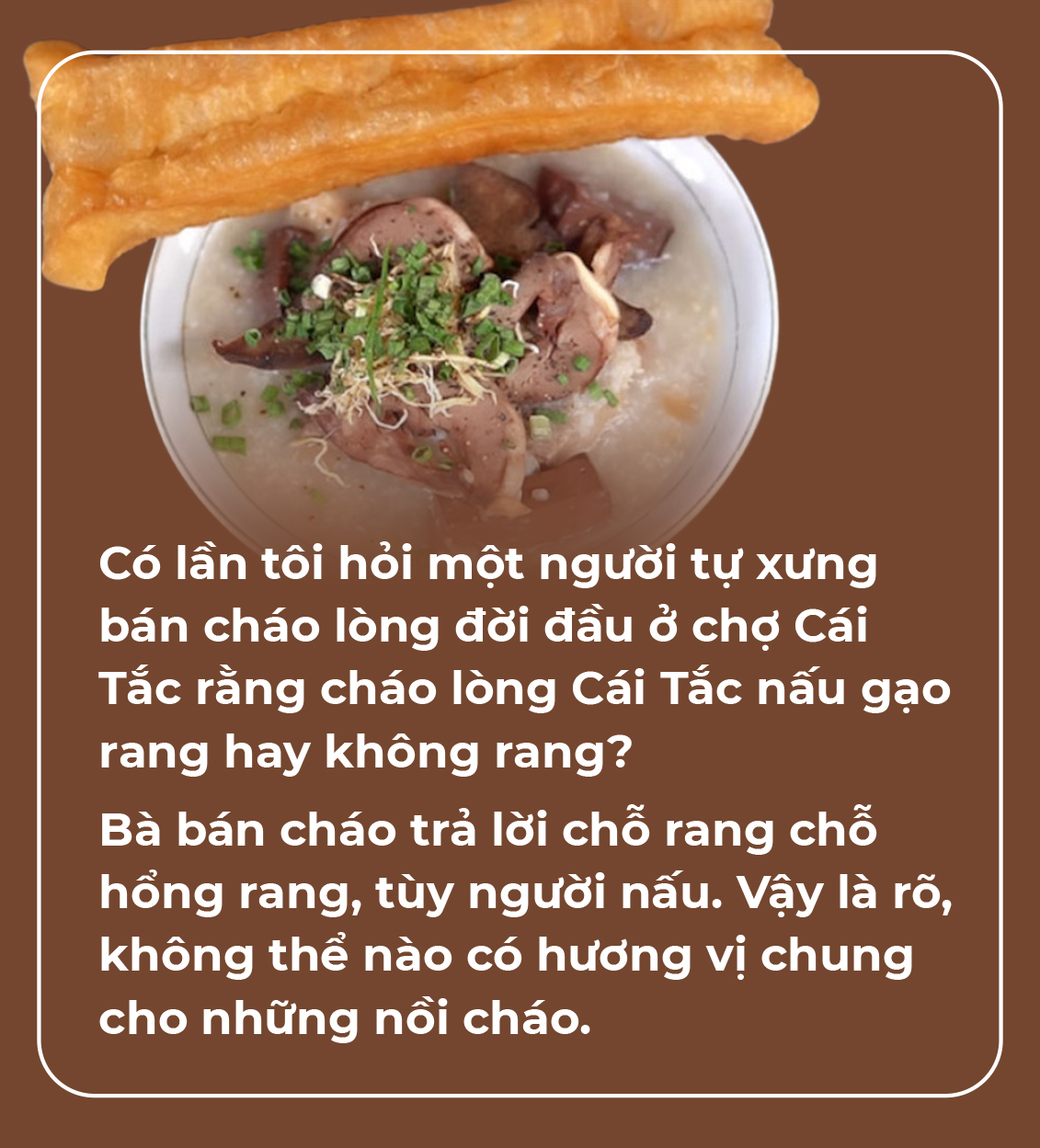 Lữ khách đường xa vô tình hay hữu ý ghé quán, kiểu như tôi, biết được chuyện, tô cháo bỗng ngon, cái ngon hết sức đậm đà.