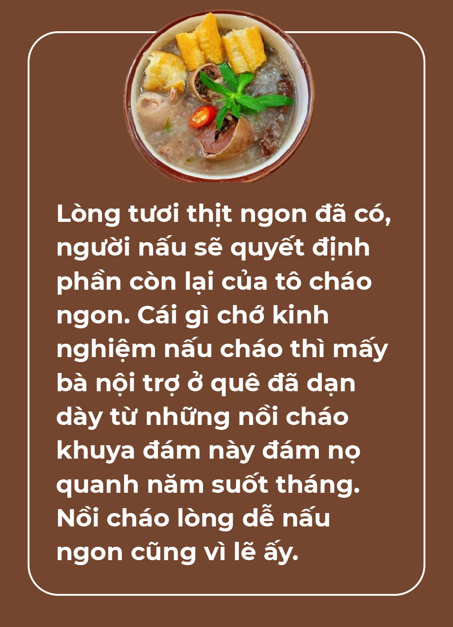 Có lò mổ là có lòng tươi từ giác khuya để sáng sớm nấu nồi cháo ra chợ. Trong nhá nhem buổi sớm chợ quê, nồi cháo lòng mỡ màng bốc khói nhấp nhô thịt thà thì còn gì hấp dẫn hơn.