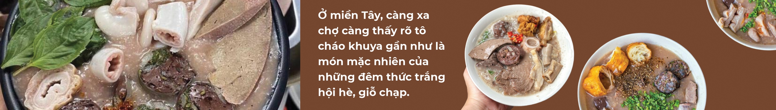 Bà chủ quán cháo thiệt thà kể khách của bà là những ông nhậu say bỏ cơm chiều, ngủ tới khuya đói bụng, những người bốc vác ở bến ghe, dân chạy xe thồ giao trái cây cho mối, rồi mấy bà bạn hàng, mấy chú xe ôm chạy khuya...