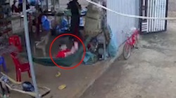 Mẹ bất lực nhìn sào đồ mới giặt bị con trai đẩy xuống mương