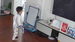 Bé trai hồn nhiên cầm con khủng long đập vỡ màn hình tivi khiến người mẹ đang ngồi sau bất lực, không nói nên lời.