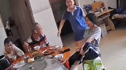 Mẹ hú hồn khi sút bóng trúng đầu con nhỏ