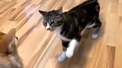 Mèo dùng chiêu mỹ nhân kế với chú chó nhưng không thành
