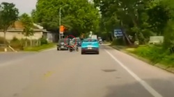 Chiếc Mercedes-Maybach đỗ chìa nửa thân sau ra đường bất ngờ bị chiếc Toyota Fortuner chạy qua đâm trúng, ủi gọn gàng lên vỉa hè.