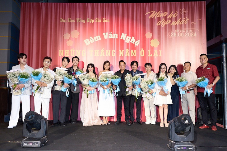 Không gian buổi công chiếu Mùa hè đẹp nhất được tái dựng khung cảnh tại trường đại học xưa với nhiều hình ảnh thân thuộc như căng tin, sân khấu văn nghệ…