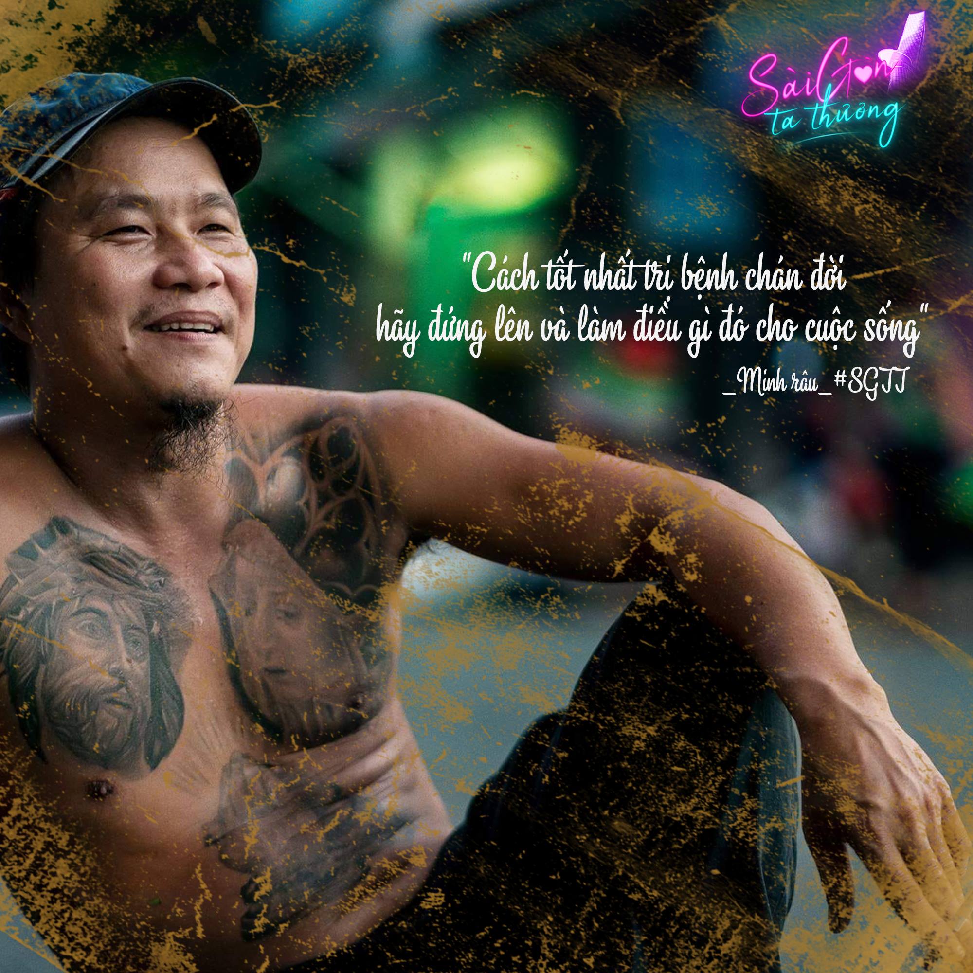 "Từ lúc tôi dừng cuộc chơi, thay đổi tư duy theo chiều hướng tích cực thì con người tôi thay đổi hoàn toàn. Có một câu tôi hay nói: Cách tốt nhất để trị bệnh chán đời là hãy đứng lên và làm điều gì đó cho cuộc sống xung quanh" - Minh Râu hài hước nói về quan điểm sống.