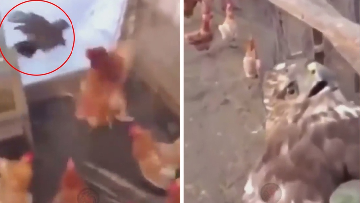 Mò vào chuồng gà kiếm ăn, diều hâu bị cả đàn gà rượt đá tơi bời