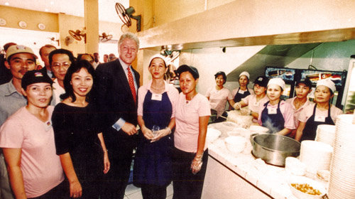 TTCT - Mười lăm năm trước, bởi một cơ duyên tình cờ, tôi được quen biết với hai nghệ nhân về nghề bếp và nhà hàng mang họ Huỳnh. Ông Huỳnh cha tức đầu bếp Huỳnh Lập - chủ nhân nhà hàng L’Étoile và nhà hàng thức ăn nhanh Gà Nướng Pháp (Chef Lập - Poulet De France) và ông Huỳnh con tức Alain Huỳnh Trung Tấn - từng là người sáng lập các nhà hàng vang bóng một thời như Vietnam House, Le Mekong, Beaujolais, Blue Ginger và Phở 2000 (chuỗi cửa hàng phở đầu tiên của Việt Nam từng được Tổng thống Mỹ Bill Clinton chọn đến ăn trưa trong chuyến công du Việt Nam hồi năm 2000).Tổng thống Mỹ Bill Clinton ăn trưa tại Phở 2000 trong chuyến công du VN năm 2000 - Ảnh tư liệuĐiều khá hay là hai nghệ nhân họ Huỳnh này dù từng kinh doanh các nhà hàng cao cấp suốt mấy thời đại: ông Lập có nhà hàng Olympia nổi tiếng ở Sài Gòn trước năm 1975, mấy nhà hàng bên Mỹ, nhưng cuối cùng cả hai dường như đều muốn dừng chân ở việc khai phá các nhà hàng thức ăn nhanh.Năm ngoái trước khi qua đời ở tuổi 85, ông Huỳnh Lập đã nói rõ ước nguyện: mong các con mở rộng thương hiệu “Chef Lập - Gà Nướng Pháp” thành một chuỗi nhà hàng thức ăn nhanh. Tháng 3 này, các con ông bắt đầu thực hiện ước nguyện đó bằng việc chuẩn hóa và mở thêm mấy cửa hàng Gà Nướng Pháp nữa tại Sài Gòn. Tại sao ước nguyện cuối đời của ông chỉ chú tâm vào việc phát triển chuỗi Gà Nướng Pháp?Gian khổ của một nghệ nhân về gà và xốtỞ ông Huỳnh Lập, ngoài hiểu biết rộng trong nghề thì khi đi sâu vào từng sản phẩm ông cũng nắm rất chắc, chỉ riêng sự am hiểu về gà của ông thôi cũng đã là vô địch.Bắt đầu từ tên gọi của nguyên liệu ông cũng định vị rõ ràng, ông bảo trong ẩm thực Pháp gọi poule là gà mái dầu, nặng đến 3kg, đã đẻ trứng, thịt chắc và nhiều mỡ, thích hợp để luộc hay ninh; gọi poulet là gà mái tơ trọng lượng từ 1-2kg thích hợp cho món nướng, poulet ngon thì da phải mịn và láng, thịt phải ráo và săn, gà non quá thịt sẽ mềm và nhạt; còn poussin là loại gà non trọng lượng từ 450-500g rất tuyệt cho món nướng nguyên con; ngoài ra còn có poularde là gà mái tơ vỗ béo, nặng từ 2-3kg…Không những thế, giai thoại về các món gà cũng được kể rất duyên: món gà Marengo quen thuộc có tên này vì được nấu cho Napoleon ăn sau khi thắng trận chiến ở Marengo (miền bắc Ý) năm 1800. Món Chicken à la Kiev (gà nấu kiểu Kiev) gồm ức gà tẩm với bánh mì vụn bên trong có nhồi bơ ướp mùi, khi dùng nĩa xuyên vào lập tức bơ tràn ra như một dòng nham thạch nóng và thơm lừng, món này do nhà báo Anh Lesley Chamberlain khám phá và đặt tên khi được ăn năm 1983 tại Liên Xô và ông gọi đây là món kinh điển thời Xô viết vì chưa từng có tại Nga trước cách mạng.Món Coronation Chicken (món gà ngày đăng quang) gồm gà lạnh dùng với xốt mayonnaise mùi cà ri ăn kèm với trái mơ, đây là món phục vụ trong lễ đăng quang của nữ hoàng Elizabeth đệ nhị hồi năm 1953…Không chỉ là kiến thức và giai thoại, ông nắm rất rõ kỹ thuật xử lý một miếng gà với châm ngôn luôn nằm trên cửa miệng: “Fruity inside, Grispy outside”, nghĩa là miếng gà khi nướng xong phải “giòn ở bên ngoài, nhưng mềm mại, tươi rói bên trong”. Khi bắt đầu nướng, nhiệt độ lò thường đẩy lên cao, đặt thịt lên ngọn lửa lò nướng thì bên ngoài sẽ giòn nhanh, nhưng máu và nước thịt bên trong sẽ dồn lên trên, đầu bếp canh đúng thời gian lật miếng thịt lại thì một quy trình ngược chiều diễn ra, chất nước thịt bên trong cứ thế bị dồn vào giữa làm miếng thịt không bị khô mà tươi nguyên, thơm tho…Nhưng do gà là một nguyên liệu tương đối trung tính, mùi vị không quá mạnh nên dễ làm nền cho các gia vị khác thăng hoa, vì vậy món gà nướng của ông như là một khung vải bố để trên đó ông tha hồ thể hiện các màu sắc, đó là các loại xốt. Và thế là tiệm gà nướng của ông hồi năm 1999 là nơi giúp cho nhiều người Việt Nam có những trải nghiệm mới về các loại xốt Tây mà họ ít biết trước đó. Họ được ăn gà nướng kiểu Pháp dùng với bao nhiêu là loại xốt lúc nồng nàn, lúc dịu êm của một bức tranh khẩu vị đặc sắc: gà nướng dùng với xốt nấm, xốt tiêu, xốt hành, xốt cam, xốt cà ri, xốt tôm càng, xốt bơ - chanh, xốt mù tạt Dijon…Chỉ một món ăn mà đòi hỏi bấy nhiêu công phu, giúp ta hiểu ra rằng sẽ có một mâu thuẫn rất lớn khi muốn mở rộng kinh doanh cho các nhà hàng với quá nhiều món.Anh Alain Tấn và biểu tượng của Gà Nướng Pháp - Ảnh: Phan Quang…Từ kinh nghiệm cả cuộc đời làm ăn của mình, ông Huỳnh Lập đã truyền được cho các hậu duệ của ông bí quyết kinh doanh quan trọng: gom cho sắc lại, như ánh sáng thông thường vô thưởng vô phạt nhưng gom lại thành tia sáng laser thì có thể xuyên thủng cả sắt thép! Gom ánh sáng lại thành một tia laserÔng Huỳnh Lập theo đuổi nghề nhà hàng loại sang từ nửa thế kỷ qua: nhà hàng Oly
