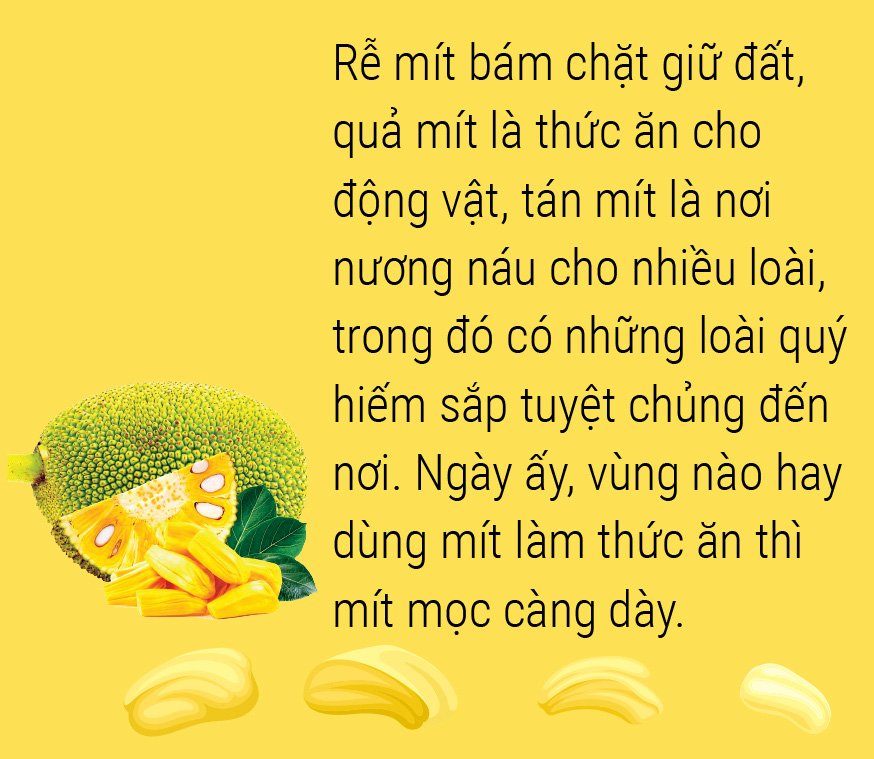 Nhà vua khi ấy ra lệnh trồng lại rừng ồ ạt. Trên đất bạc màu, mít mọc sum suê, quả to vật vã chín rơi xuống đất, lăn lông lốc xuống đồi, lại gieo rắc bao nhiêu là hạt cho đợt cây mới.