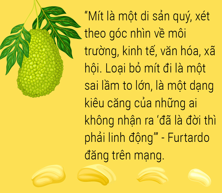 Ngược lại, trong bài viết của AP, ta gặp Furtado và người yêu của bà là Lobão 57 - những người coi mít là lẽ sống. Furtado ngày nào cũng uống sinh tố mít và mơ có ngày được "hành hương" về nơi mít ra đời, chân dãy Ghats Tây, Ấn Độ.
