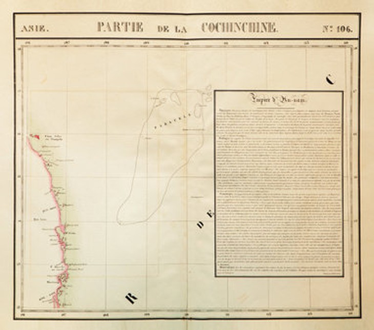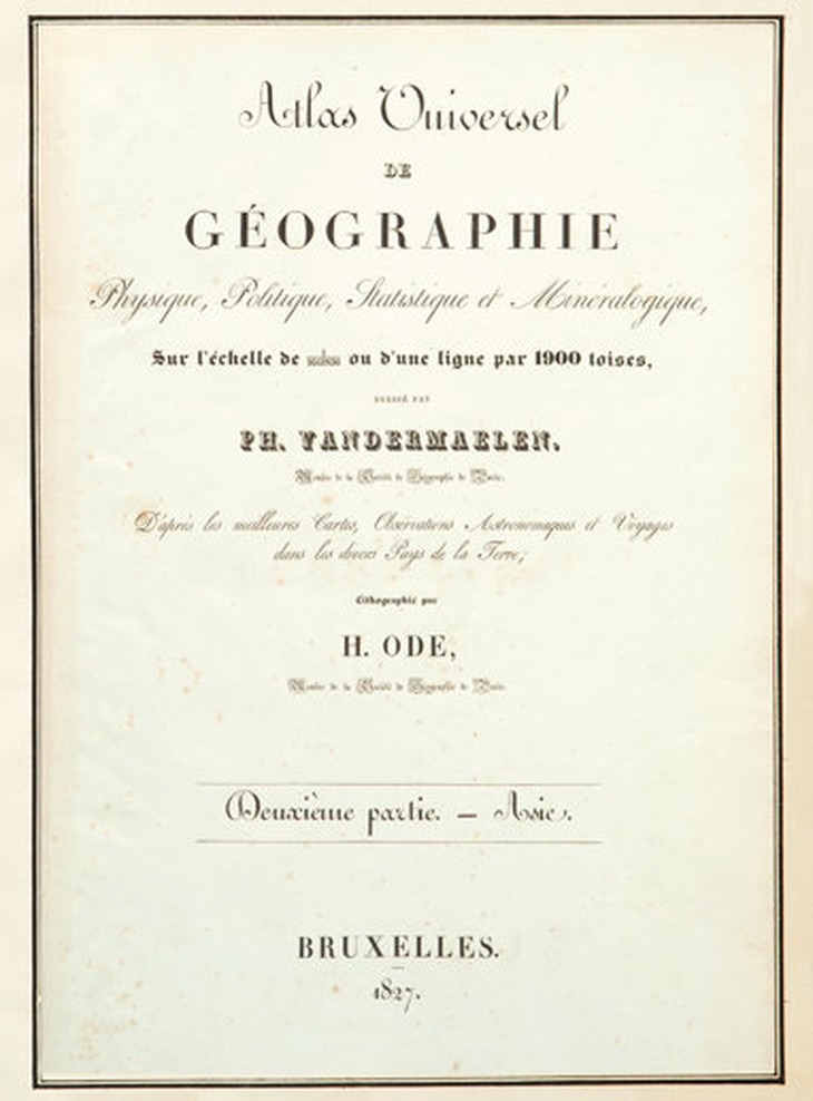 TTCT - Như Tuổi Trẻ đã đưa, chiều 13-5-2014 Bộ Thông tin - truyền thông tiếp nhận và công bố bộ Atlas bản đồ thế giới của nhà địa lý học Phillippe Vandermaelen (1795-1869), người Bỉ, sáng lập Viện Địa lý hoàng gia Bỉ, biên soạn. Bản đồ PARTIE DE LA CHINE trong bộ ATLAS UNIVERSEL xác định cương giới cực nam của Trung Quốc chỉ đến đảo Hải NamATLAS DU UNIVERSEL do Phillippe Vandermaelen biên soạn gồm sáu tập: Châu Âu (tập 1), Châu Á (tập 2), Bắc Mỹ (tập 3), Nam Mỹ (tập 4), Châu Phi (tập 5) và Châu Úc (tập 6), xuất bản tại Bruxelles (Bỉ) vào năm 1827. Tập 2 của Atlas này có ba bản đồ về Việt Nam là: bản đồ TONQUIN (Bắc Hà) tờ số 97, trang 108; bản đồ CAMBODGE ET AN-NAM (Cao Miên và An Nam) tờ số 105, trang 115 và bản đồ PARTIE DE LA COCHINCHINE (Bộ phận thuộc Nam Hà) tờ số 106, trang 116.Đáng quan tâm nhất là bản đồ PARTIE DE LA COCHINCHINE. Bản đồ vẽ vùng bờ biển miền Trung Việt Nam kéo dài từ vĩ tuyến 12 đến vĩ tuyến 16 gồm các vùng: BINK-KANG (Bình Khang, tên cũ của tỉnh Khánh Hòa) với các địa danh: Carmraigne havre (cảng Cam Ranh), Nhiatrang (Nha Trang); QUIN-HONE (Quy Nhơn) với các địa danh: Phuyen havre (cảng Phú Yên), Cambir B. (Cù Lao Xanh, nay là xã đảo Nhơn Châu ở thành phố Quy Nhơn), P. Quinhone (Quy Nhơn), Batangan (mũi Ba Làng An, Bình Sơn, Quảng Ngãi)... ở trên đất liền và ven bờ biển.Ngoài ra trên bản đồ còn thể hiện một chuỗi đảo ven biển, bắt đầu từ các đảo thuộc vịnh Cam Ranh ở phía nam, chạy lên phía bắc với hơn 20 hòn đảo lớn nhỏ và kết thúc với quần đảo Cham Collao ou Champella (Cù Lao Chàm) ở ven biển Quảng Nam.Phần chính của tờ bản đồ này vẽ quần đảo PARACELS (Hoàng Sa) ở ngoài khơi, nằm trong vùng biển có vĩ độ từ 160B đến 170B, kinh độ từ 1090Đ đến 1110Đ, gồm các đảo: I. Pattles (đảo Hoàng Sa), I. Docan (đảo Duncan, tức đảo Quang Hòa), Tree I. (đảo Cây), I. Lincoln (đảo Lincoln), Triton (nhóm đảo Tri Tôn), Rocher au dessas de l’eau (khu vực Đá Bông Bay).Vị trí các đảo, đá, nhóm đảo... thuộc quần đảo PARACELS được thể hiện trên bản đồ này là tương đối chính xác so với tọa độ thực tế hiện nay.Bên phải hình vẽ quần đảo PARACELS trên tấm bản đồ này là ô hình chữ nhật, chiếm 1/3 diện tích tờ bản đồ ghi dòng chữ EMPIRE D’ AN-NAM (Đế chế An Nam), giới thiệu tóm tắt về vương quốc An Nam bằng tiếng Pháp, theo từng tiểu mục: Physique (Hình thế), Politique (Thể chế chính trị), Statistique (Thống kê) và Minéralogie (Khoáng vật).Từ cách đặt tên tờ bản đồ là PARTIE DE LA COCHINCHINE, cách thể hiện các địa danh trên đất liền, các đảo ven bờ biển và quần đảo PARACELS ở ngoài khơi vùng biển Việt Nam, cách giới thiệu về vương quốc An Nam lúc bấy giờ cũng như việc xếp tờ bản đồ này vào nhóm bản đồ miêu tả hình thế và vị trí địa lý của Việt Nam đương thời trong bộ Atlas chứng tỏ tác giả bộ Atlas nhìn nhận PARACELS là một phần lãnh thổ của vương quốc An Nam lúc đó.Tờ bản đồ này lại nằm trong bộ bản đồ thế giới do một nhà địa lý học kiệt xuất của phương Tây biên soạn từ đầu thế kỷ 19, được Viện Địa lý hoàng gia Bỉ xuất bản chính thức nên có giá trị khoa học và giá trị pháp lý rất cao.Bìa tập 2 bộ ATLAS UNIVERSELCũng lưu ý thêm rằng từ thế kỷ 16, các nhà địa lý và nhà hàng hải phương Tây, đầu tiên là những người Bồ Đào Nha, đã vẽ bản đồ vùng biển Hoàng Sa và định danh Pracel (hay Parcel, Paracels) trên tấm bản đồ để chỉ quần đảo mà người Việt gọi là Bãi Cát Vàng hay Hoàng Sa.Đồng thời họ cũng định danh vùng bờ biển đối diện với quần đảo Pracel (Parcel, Paracels) ở phía tây là Costa de Pracel hay Coste de Paracels (bờ biển Hoàng Sa).Tuy nhiên vào thời điểm này, vị trí quần đảo Paracels trên các bản đồ phương Tây cũng như vị trí quần đảo Hoàng Sa trên bản đồ cổ Việt Nam chưa được thể hiện chính xác về tọa độ và Paracels theo cách hiểu của người phương Tây cũng như quần đảo Hoàng Sa người Việt lúc đó bao gồm cả quần đảo Trường Sa ngày nay, thậm chí cả một số đảo gần bờ ở vùng biển Nam Trung bộ.Song với tấm bản đồ PARTIE DE LA COCHINCHINE nằm trong ATLAS UNIVERSEL của Phillippe Vandermaelen, lần đầu tiên đã có sự phân biệt rõ ràng giữa các đảo ven bờ như: Cham Collao ou Champella (Cù Lao Chàm), Cambir B. (Cù Lao Xanh), P. Canton ou Cacitam (Cù Lao Ré, đảo Lý Sơn)... với Paracels (quần đảo Hoàng Sa) ở giữa biển Đông.Sau Phillippe Vandermaelen, vào năm 1838 giám mục Jean Louis Taberd đã công bố An Nam đại quốc họa đồ trong Từ điển Việt - Bồ - Latin, trên đó có vẽ chín dấu chấm nhỏ tượng trưng cho quần đảo Hoàng Sa và ghi chú đó là “PARACELS seu Cát-Vàng” (Paracels, hay là Cát Vàng).Cả hai bản đồ này đều khẳng định Paracels chính là Cát Vàng hay quần đảo Hoàng Sa, bác bỏ luận điệu của các nhà nghiên cứu Trung Quốc khi cho rằng Paracels là Xisha qundao (Tây Sa quần đảo) mà Trung Quốc đang tuyên bố chủ quyền, còn quần đ