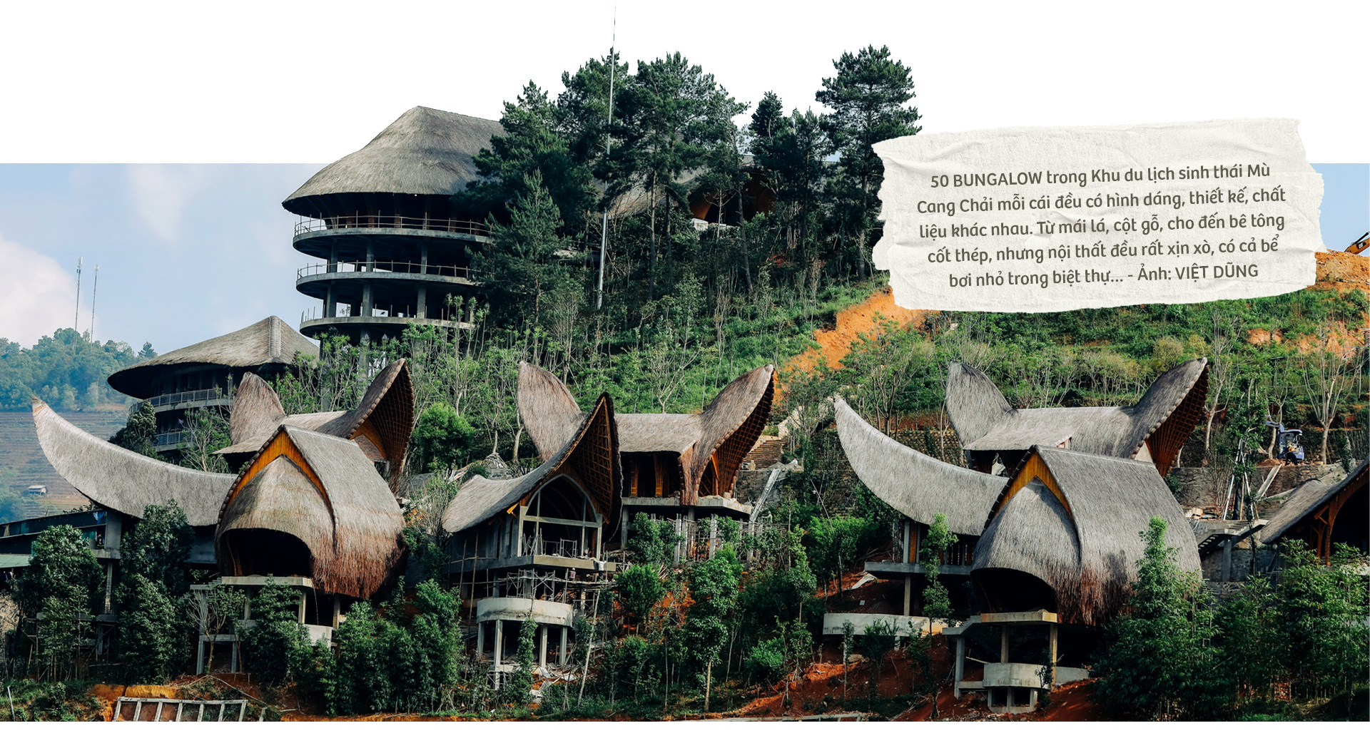 Đại diện nhà đầu tư cho biết quần thể Khu du lịch sinh thái Mù Cang Chải không chỉ có 50 bungalow đa dạng hình thù, chất liệu xây dựng nằm rải rác trên diện tích 6,5 ha đất đồi đầy cây xanh. Điểm nhấn của khu du lịch là một nhà trung tâm rộng trên 3.000 m2 được làm 100% từ tre nhập khẩu cùng một số loại cây quí hiếm như tử đằng, phượng tím…nhập khẩu trồng xen lẫn với những cây bản địa như tớ dày, đào, mai, mận…