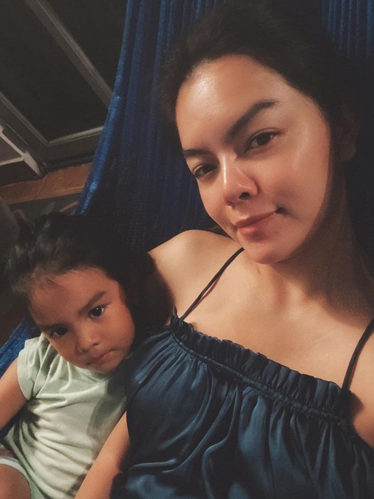 Con trai Lê Bê La được bà ngoại đưa về quê chăm sóc từ Tết nguyên đán do dịch kéo dài. Liên tục suốt bốn tháng dài, nữ diễn viên dồn sức quay các dự án phim đã nhận và than gia các chương trình thiện nguyện. Thời gian rảnh, cô gọi facetime để vơi bớt nỗi nhớ con.