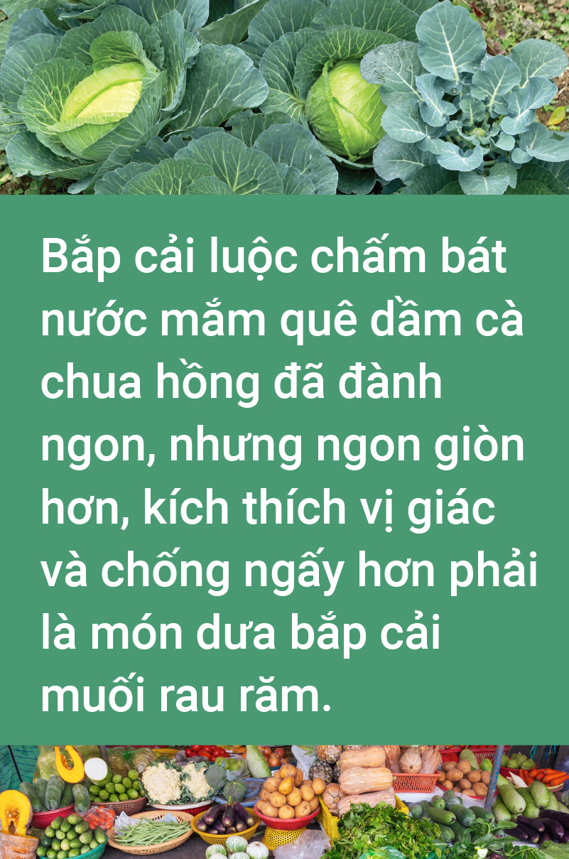 Rẻ nhất nhiều nhất trong các chợ là bắp cải. Chiếc bắp cải nặng đằm tay, lõi cuốn chặt sau cơn rét đậm trước Tết.