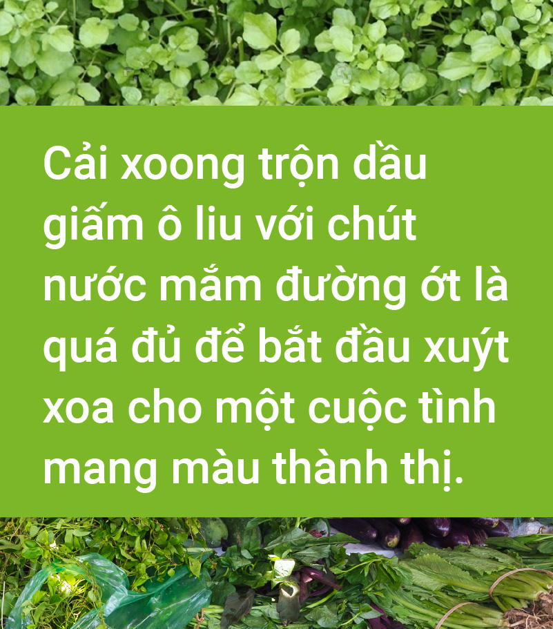 Cái sự mừng này quả thực chân thành khi nguồn vitamin tươi xanh vừa hái đã lại dội về đầy chợ, thay thế cho các thức ôi nẫu giáo điều tích trữ trong tủ lạnh. Rau củ mùa xuân bạt ngàn phong phú chứ không lèo tèo vài loại như rau mùa hè.