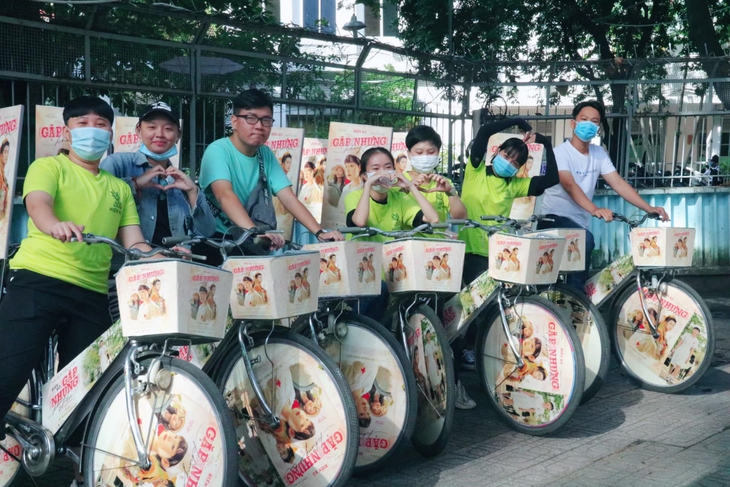 Fan đạp xe, mang hình ảnh sản phẩm âm nhạc mới của Hiền Hồ đi khắp mọi nẻo đường.