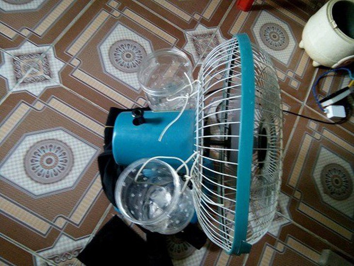 Trong cái nóng, bỗng dưng "ló" toàn cái lạ lùng. Thùng đá được chọc thủng 2 lỗ. Một phía hút gió quạt và một phía thoát hơi mát.Nếu đang là người ở thuê hoặc ví tiền eo hẹp, tình cảnh này lại càng khiến dân tình nảy ra loạt ý tưởng "chiến đấu" bá đạo, thú vị.