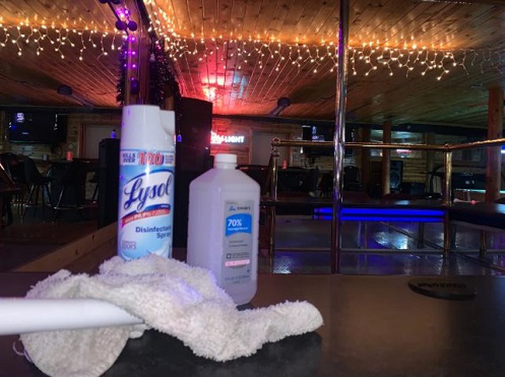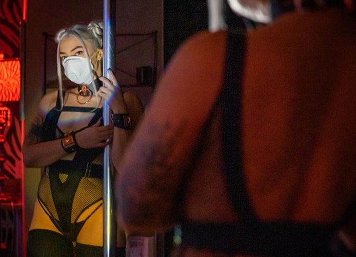 Đèn LED quanh sân khấu có vẻ sáng hơn mọi khi, vì không còn vướng khách đứng gần “khu vực boa” (ngay sát sân khấu). Cuối mỗi tiết mục, nhân viên sẽ dùng thanh dài để gỡ các tờ đôla còn vương trên sân khấu (sau đó đưa lại từng vũ công), một người khác sẽ khử trùng chuẩn bị cho màn tiếp theo. Mọi vũ công đều phải đeo khẩu trang, trong khi vẫn phơi bày những thân thể gần như hoàn hảo uốn éo gợi cảm theo điệu nhạc.