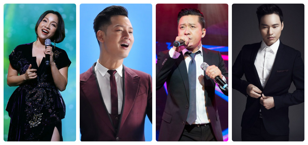 Các ca sĩ Mỹ Linh, Đức Tuấn, Tuấn Hưng và Đình Bảo (trái qua) sẽ live vào cuối tuần này để phục vụ khán giả tại nhà