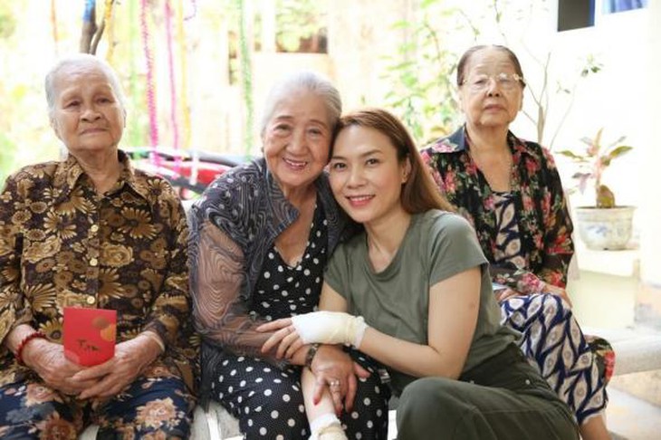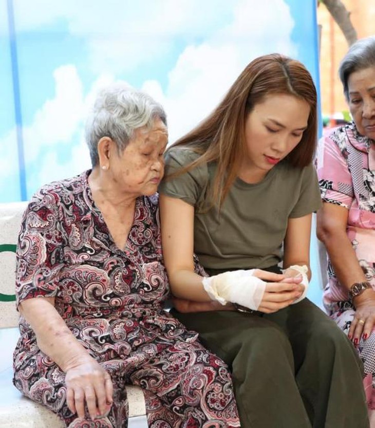 Mỹ Tâm đến thăm viện dưỡng lão nghệ sĩ với bàn tay bị thương
