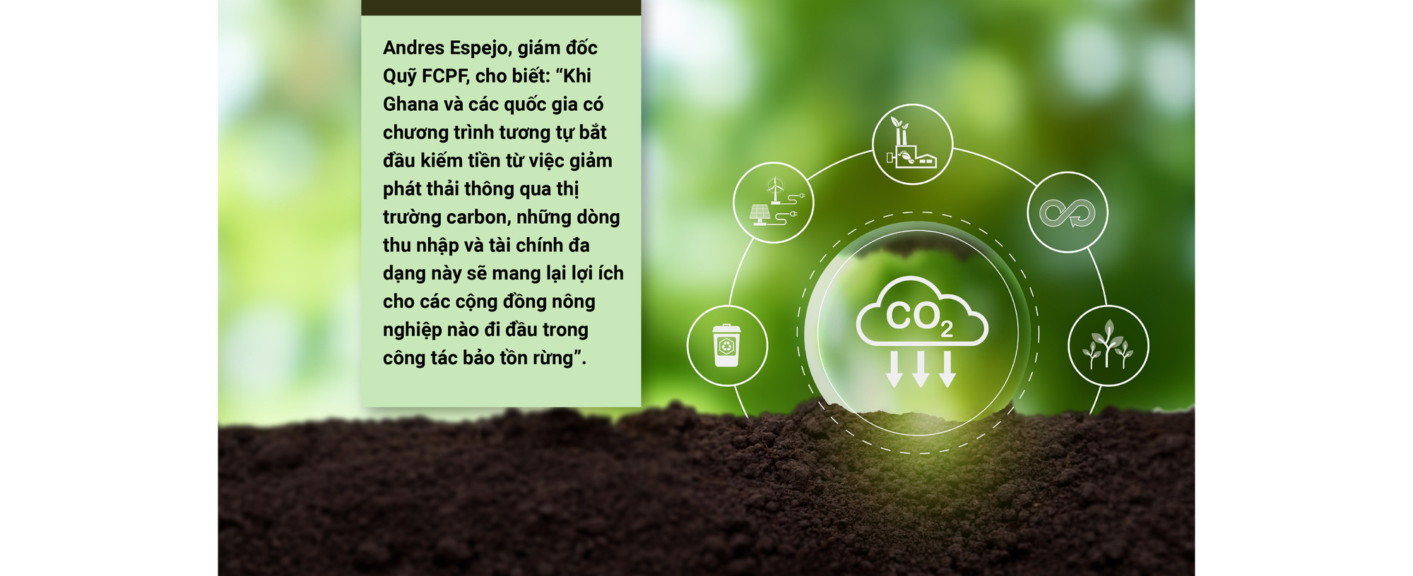 Nỗ lực tập thể đó đang được đền đáp. Vào tháng 1-2023, FCPF đã trả cho Ghana 4,8 triệu USD nhờ giảm khoảng 972.000 tấn khí CO2 trong giai đoạn giám sát đầu tiên (tháng 6 đến tháng 12-2019) theo thỏa thuận thanh toán giảm phát thải (tên viết tắt là ERPA).