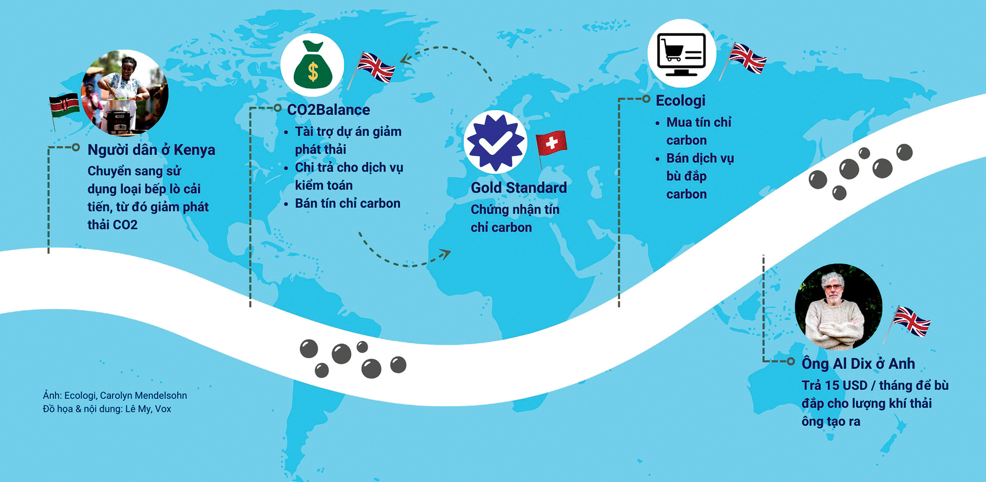 Tóm lại là: ông lão Al Dix (ở Yorkshire, Anh) trả tiền cho dịch vụ bù đắp carbon của Ecologi (ở Bristol, Anh), vốn trước đó đã mua tín chỉ carbon từ CO2Balance (ở Somerset, Anh).