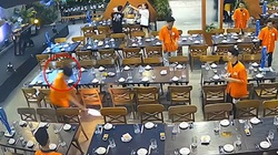 Nam nhân viên ngã dập mông vẫn giữ được ly nước cho khách