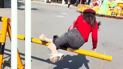 Nam nhân viên quê một cục khi trổ tài bật nhảy qua ghế