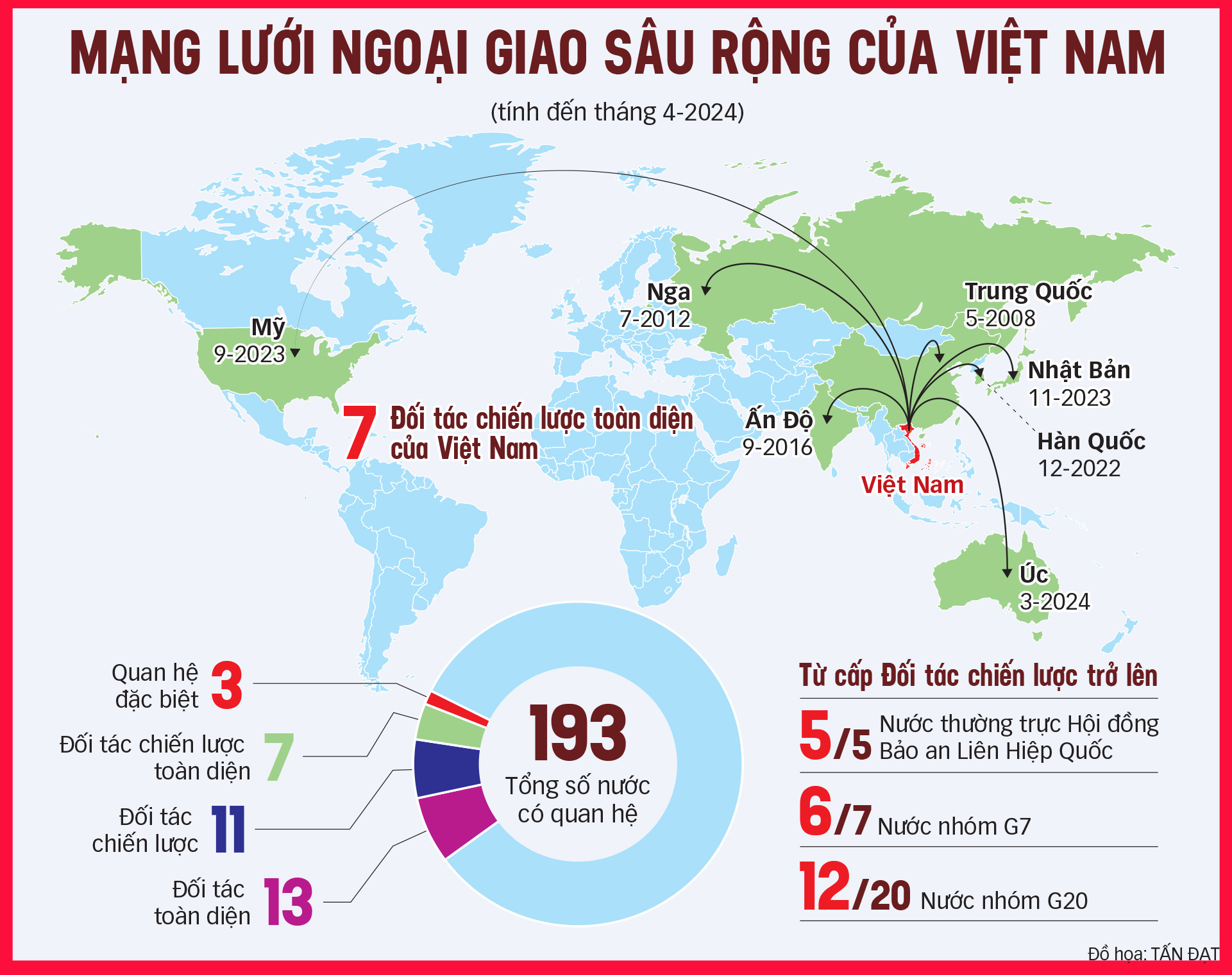 Như vậy cho đến nay, Việt Nam đã có bảy đối tác chiến lược toàn diện và con số này dự kiến tiếp tục tăng.