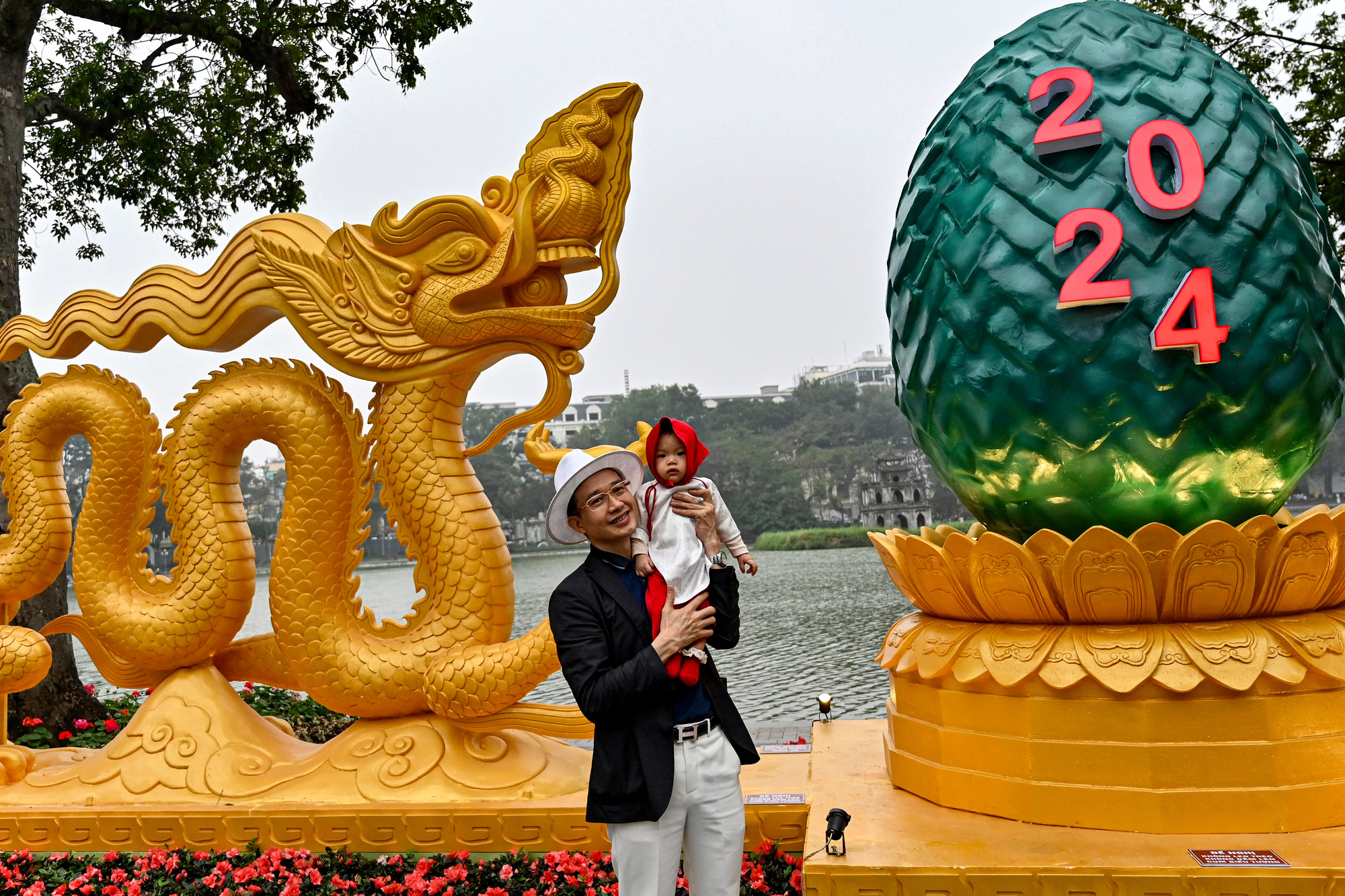 Chính sách đối ngoại đa phương hóa, đa dạng hóa giúp Việt Nam tạo dựng môi trường hòa bình phục vụ phát triển. Trong ảnh: hai cha con chụp ảnh bên bờ hồ Hoàn Kiếm dịp Tết Giáp Thìn Ảnh: AFP