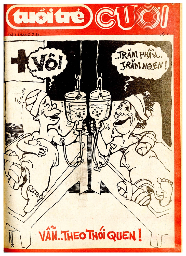 Và 01/01/1984, số báo Tuổi Trẻ Cười đầu tiên ra mắt bạn đọc. Trang bìa số đầu tiên là tác phẩm của Họa sĩ Nguyễn Tài.
