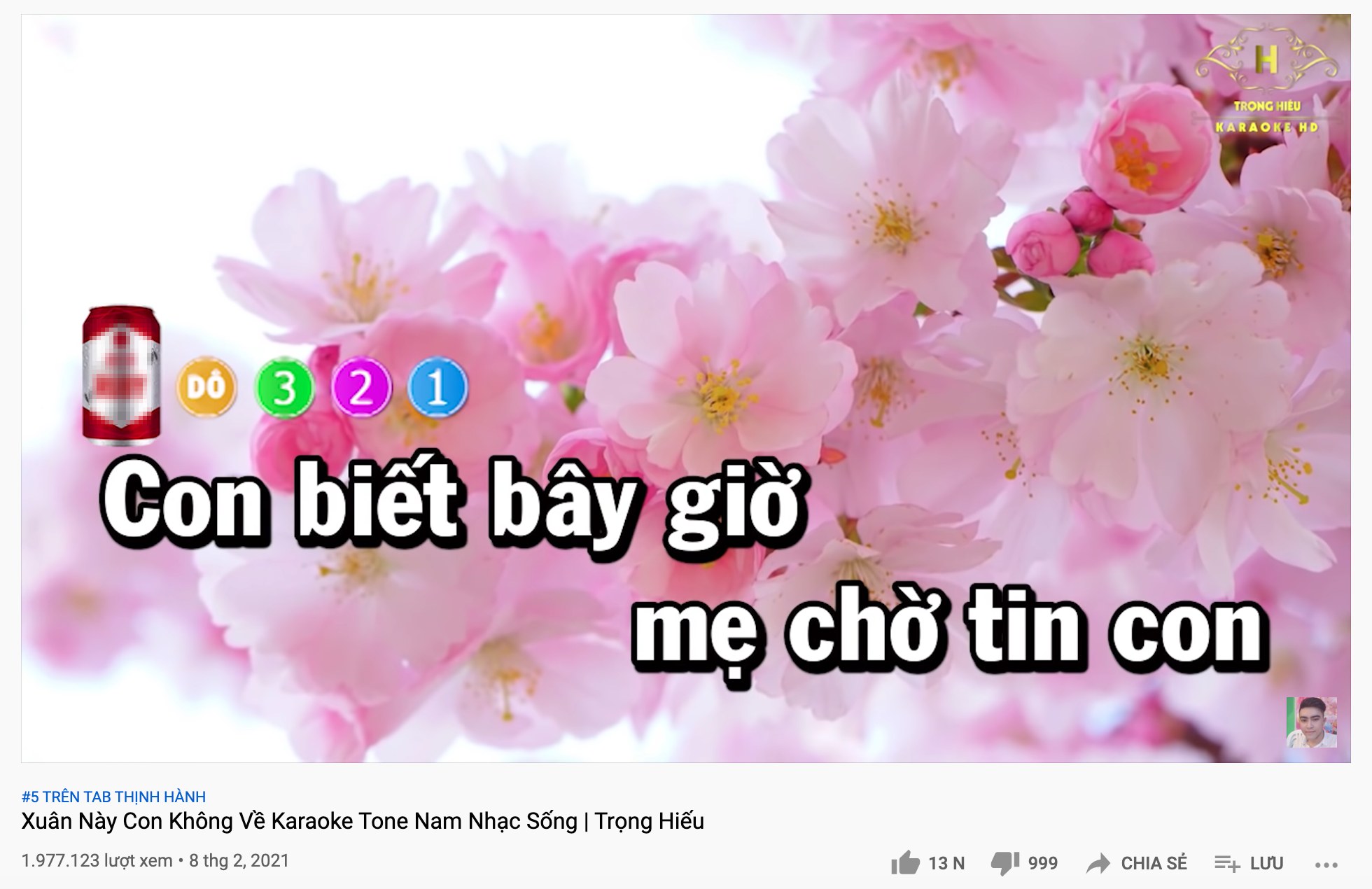Bản karaoke "Xuân này con không về" lọt Top 5 trending nhờ đánh trúng tâm lý netizen Việt năm nay.Theo sau đó là bản karaoke "Sầu tím thiệp hồng", với vị trí thứ 12. Tuy đứng giữa hàng loạt những "ngựa chiến" trên nền tảng YouTube khác ở đủ mọi thể loại như hài kịch, chương hình ca nhạc, gala hay Táo Quân... nhưng các bản karaoke vẫn có sức hút riêng.