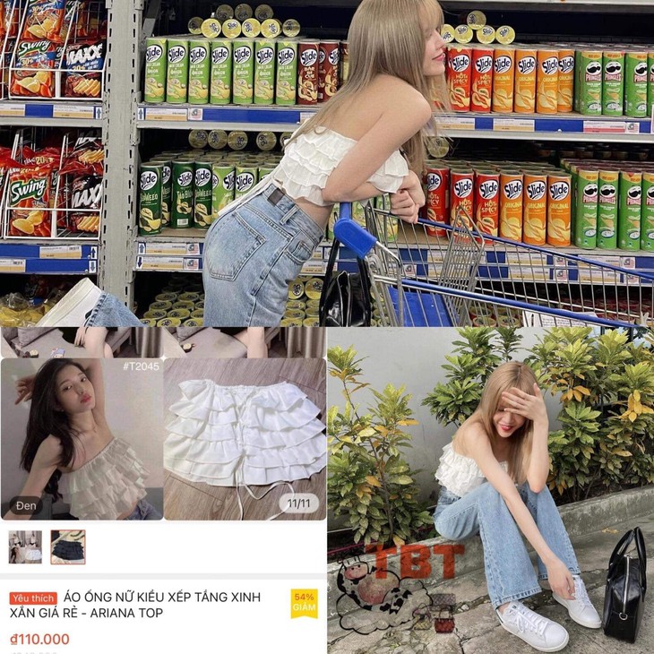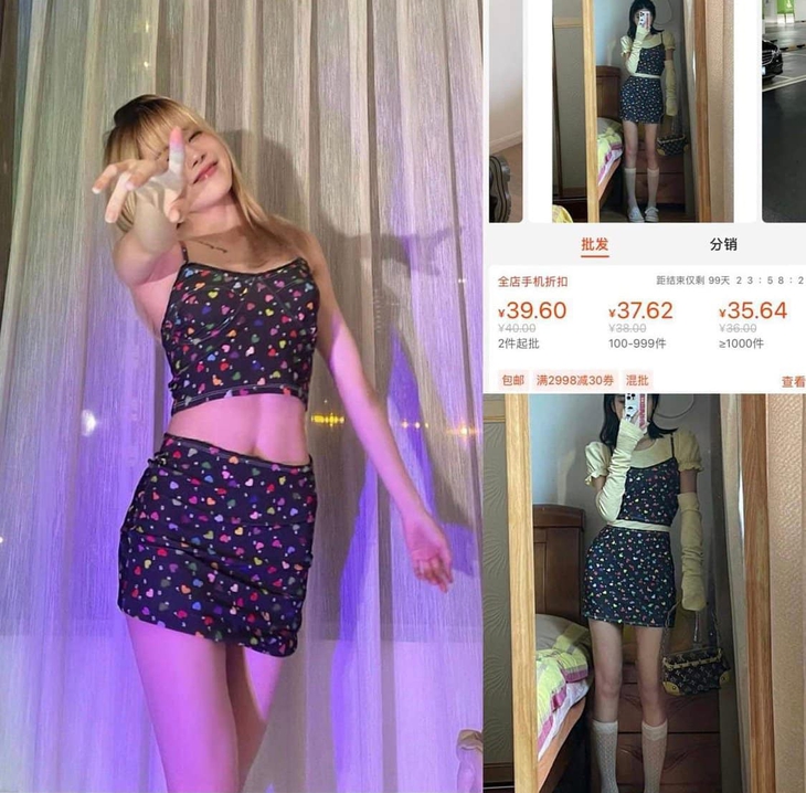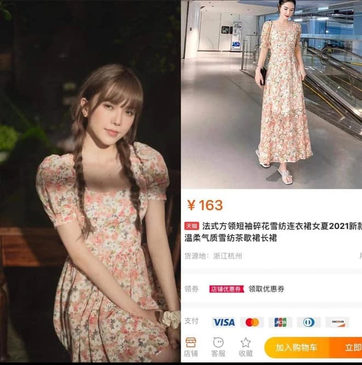 Hóa ra, nhiều set đồ mà Thiều Bảo Trâm từng khoe lại trùng khớp đến từng chi tiết với những hình ảnh quảng cáo trên các chợ điện tử Taobao, Shopee… Bất ngờ hơn, giá trị của các bộ cánh này chỉ loanh quanh vài trăm ngàn, khác xa với giá trị “trên trời” của những set đồ hàng hiệu trước đây được nữ ca sĩ chăm chỉ diện.