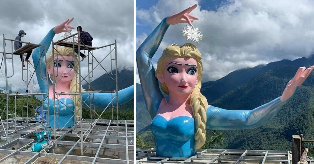 Nữ hoàng băng giá Elsa trước khung cảnh núi đồi Sa Pa.Được biết, bức tượng này được xây dựng tại một cơ sở lưu trú có tên AnSaPa. Nơi đây từng được dân mạng biết đến khi là chủ đầu tư của bức tượng Nữ thần Tự Do phiên bản pha-ke gây phản ứng trái chiều trong dư luận trước đó. Cơ sở này từng phải đóng cửa để hoàn thiện yếu tố thẩm mỹ trước khi được cho phép mở cửa trở lại.